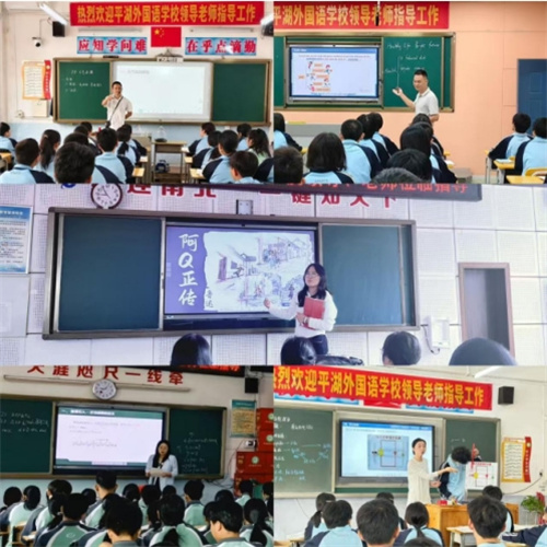 思想的火花在交流中迸发,教学的艺术在课堂中绽放。平外优秀教师们的示范课在各教室精彩呈现。杨君召、黄大平、王玉、蒋艳燕、王圆圆等老师,分别在初中英语、物理,高中语文、数学、物理课堂上各展其能。老师们立足新课标理念,紧扣学科核心素养,以精巧的课堂设计、灵动的教学互动、扎实的专业功底,将知识讲解、思维引导、能力培养融入课堂每一个环节。无论是深入浅出的知识讲解,还是生动有趣的课堂互动,都充分展现了平湖教师精湛的教学技艺与先进的教学理念,为我校教师呈现了一节节高效、鲜活、可借鉴的示范课堂,让大家在观摩中直观感受优质课堂的魅力,学习前沿的教学方法。